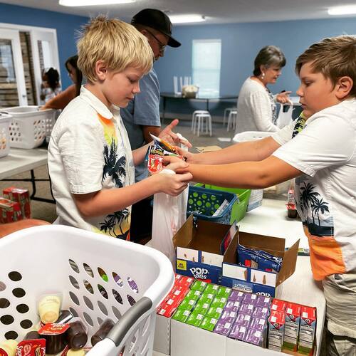 Some children leave school on Friday unsure if they’ll eat again before Monday. To help, we partner with local schools and churches to assemble Snack Packs—ready-to-eat food bundles delivered to school counselors for students in need.